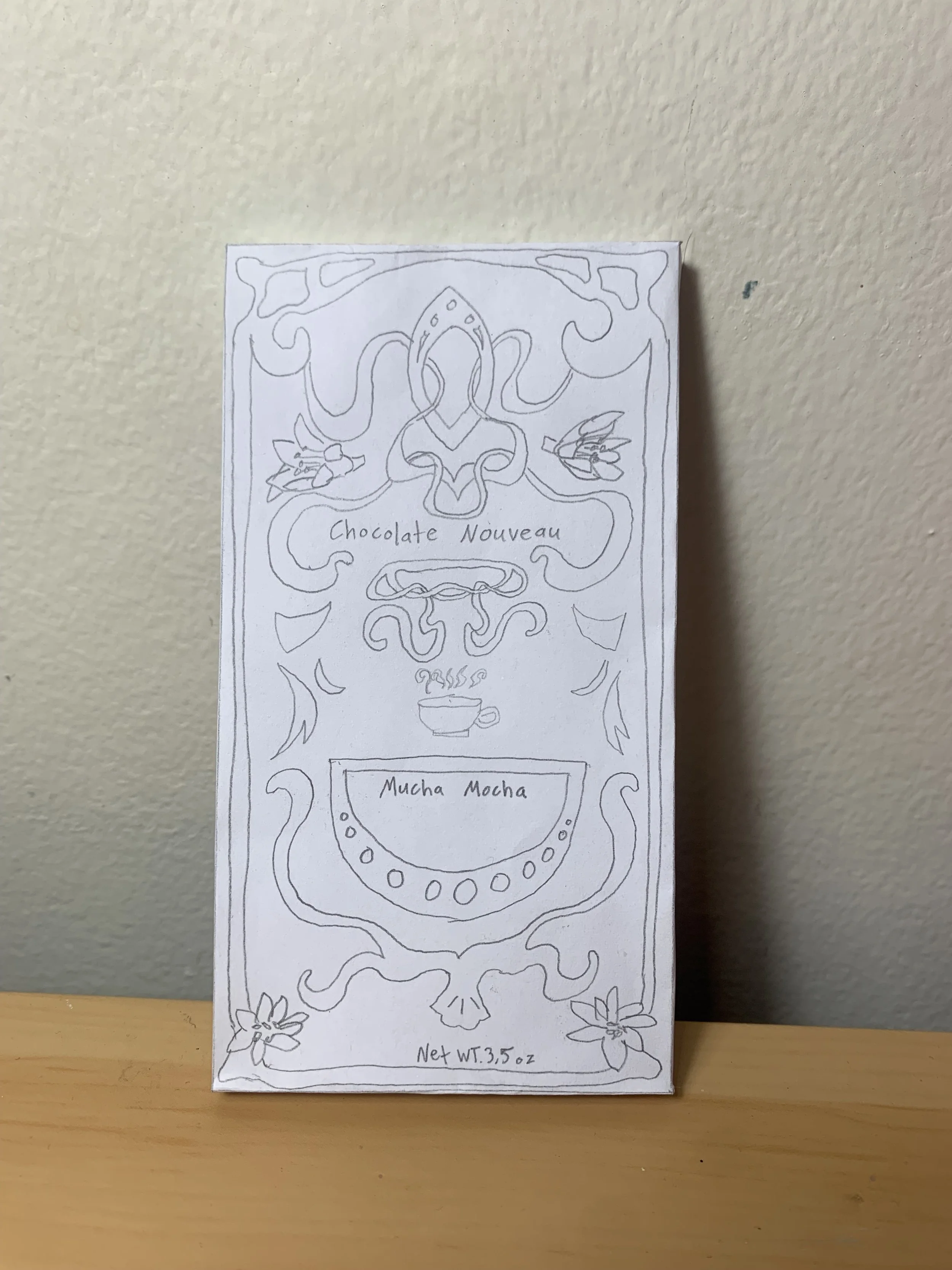 Creating a chocolate brand from scratch as well as the packaging for the chocolate bar itself, I knew I wanted to make it a more high-end chocolate. Inspired by the Art Nouveau era in art history, I envisioned the brand Chocolate Nouveau, a rich chocolate for the bougie moments in life.