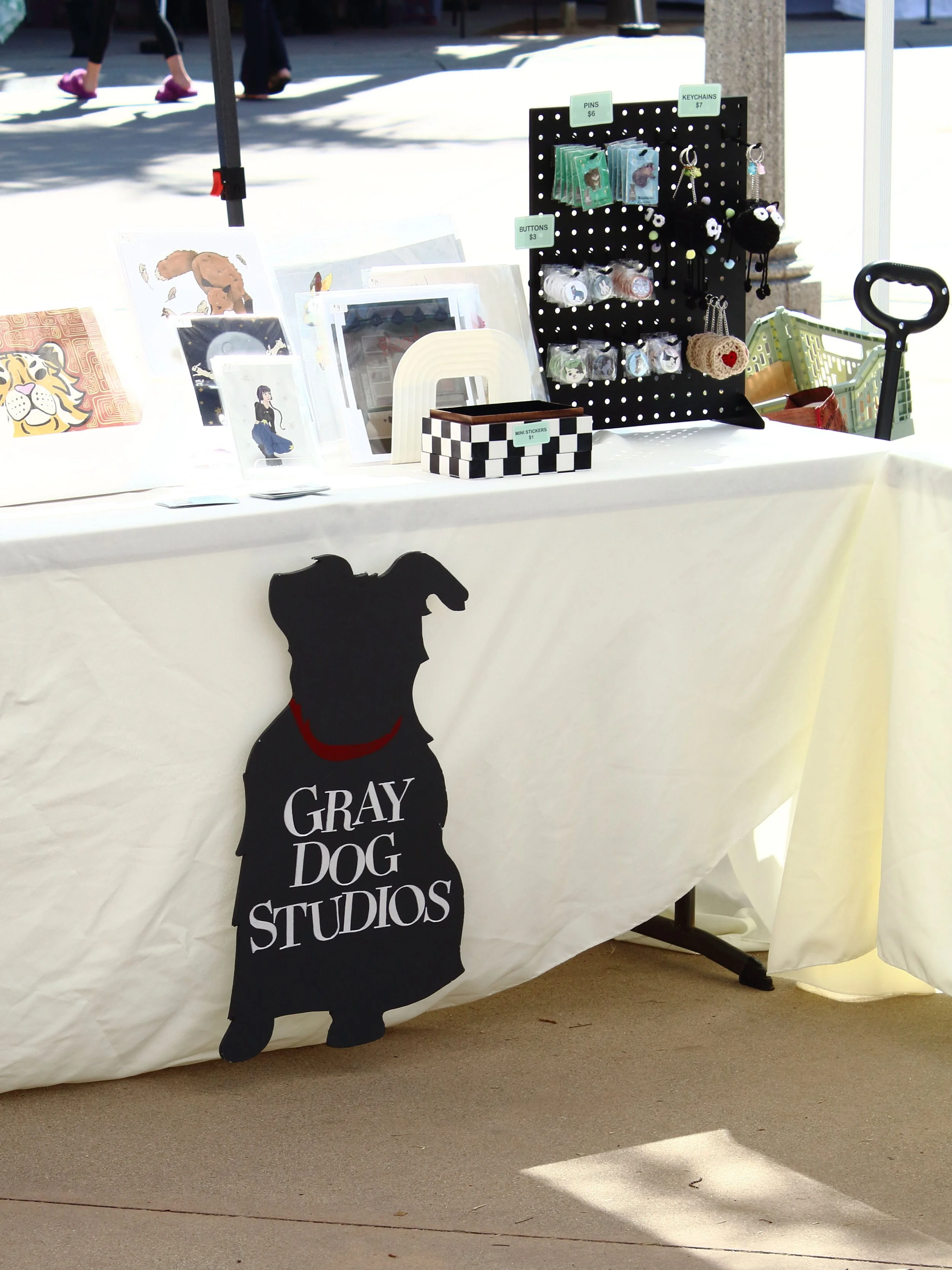 Gray Dog Studios is my brand to sell my art prints, stickers, pins, buttons, crochet goods, and more at artist alley events! I knew I needed a brand to identify myself with the crowd, so I created Gray Dog Studios, a name inspired by my Schnauzer Hank. Since I was so inspired by Hank, I decided to use his silhouette and red collar for the logo as well.